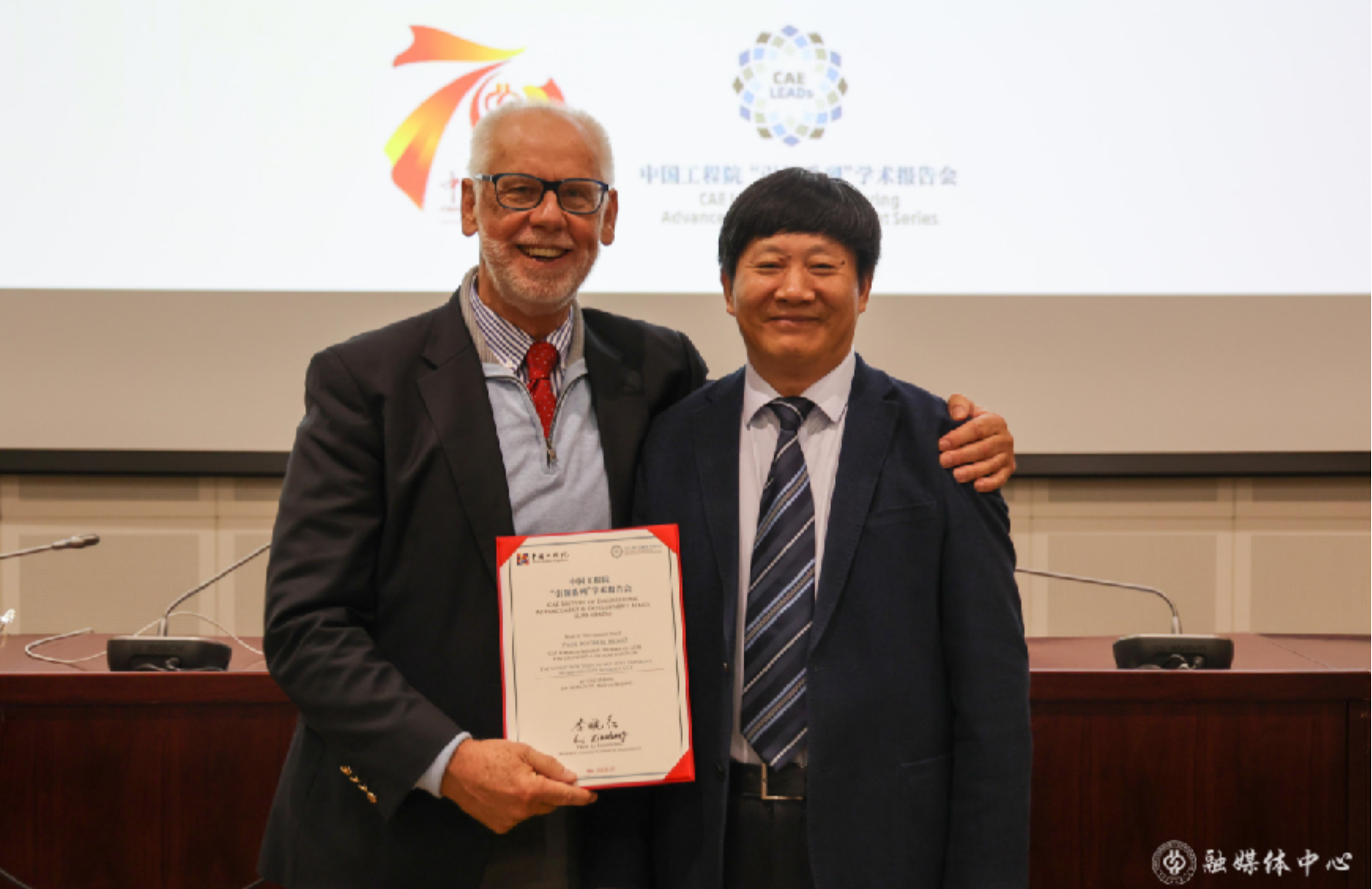 隨后,李根生院士為Michael Hood院士頒發中國工程院“引領系列”學術報告會證書,并合影留念。