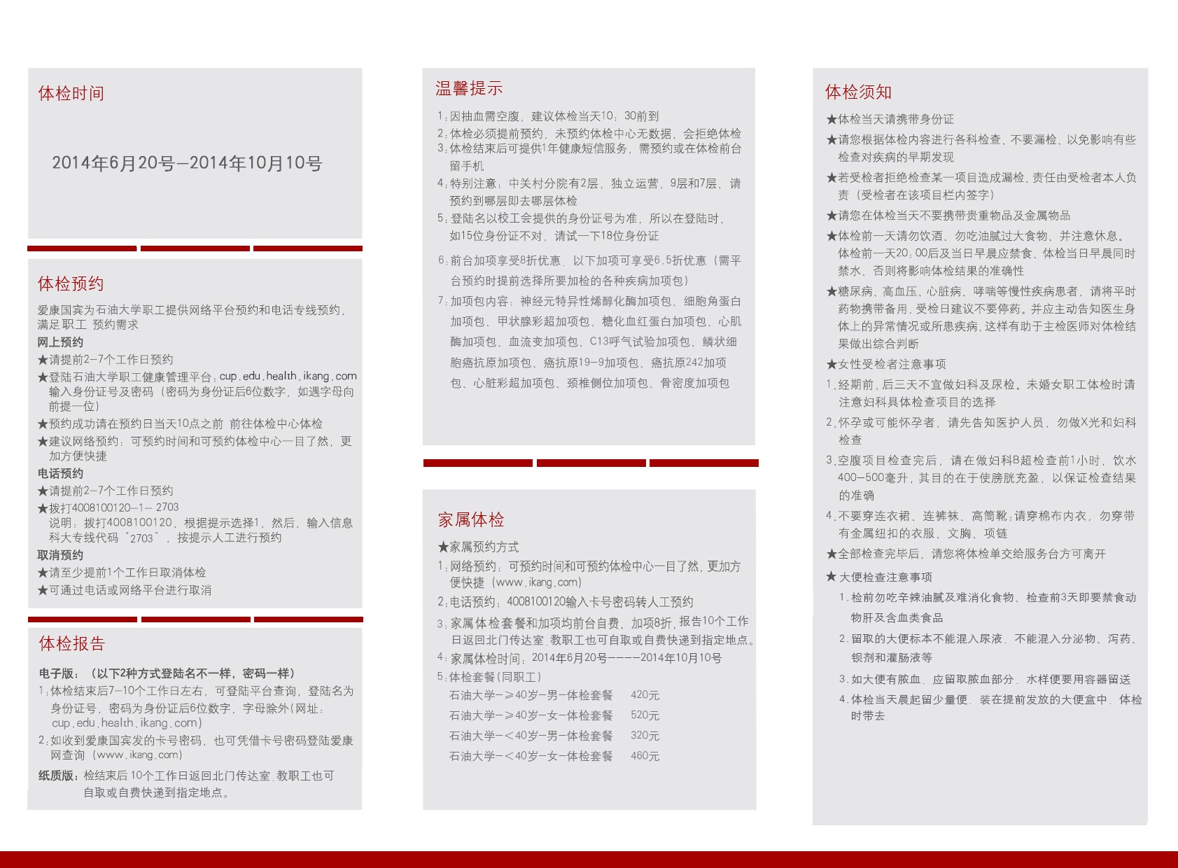 1.體檢時(shí)間:6月20日—10月10日;