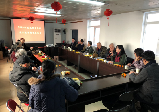在2018年春節即將到來之際,地球科學學院工會于1月24日下午在石油大院離退休處組織召開了退休教師新年座談會。本次座談會共邀請到12位退休教師參加,院長曾濺輝教授、副院長陳冬霞教授、黨委副書記周學智和工會主席余一欣副教授,以及學校離退休處和院工會的相關老師參加了座談會。在座談會上,曾濺輝院長首先從學科建設、隊伍建設、科學研究、人才培養和黨政工學等方面對地球科學學院2017年的主要工作進展進行了詳細介紹,并對學院發展面臨的一些主要問題和2018年的工作思路進行了梳理,最后對各位退休老教師對學院發展的長期關注與支持表達了感謝,并祝愿大家身體健康!新年快樂!各位退休老教師對學院在教學和科研等方面取得的成果都感到非常欣慰和興奮,并飽含深情地回憶起在學校發生的點滴往事,同時還結合自身的教學和科研經歷,針對“雙一流”學科建設、專業發展、實驗室建設等方面開展了熱烈交流和討論。大家都認為學院的長遠發展一定要依靠團隊建設和青年教師,希望青年教師能靜下心來,甘坐冷板凳,力爭取得更多的一流創新成果。
