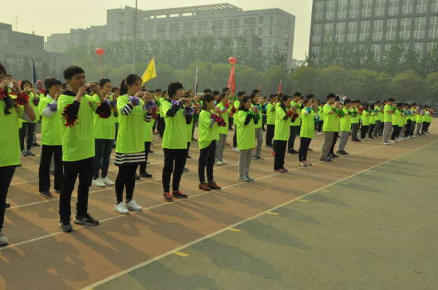 當山紅紅書記宣布運動會開始,無數的彩色氣球飛上天空,《小蘋果》歡快的音樂響起,石大教工陶笛協會的老師和學生一起,跑步進入會場,組成近200人的方陣,整齊排列在主席臺下,隨著律動的節奏,開始吹奏,悠揚的笛聲傳遍整個操場。我們的心情隨著五顏六色的氣球一起放飛,每位老師們臉上洋溢著快樂和興奮,跟學生們在一起表演,頓時感覺自己年輕了許多。主席臺上的校領導頻頻點頭,被精彩的表演所感染。全場的觀眾為老師們的表演鼓掌喝彩。