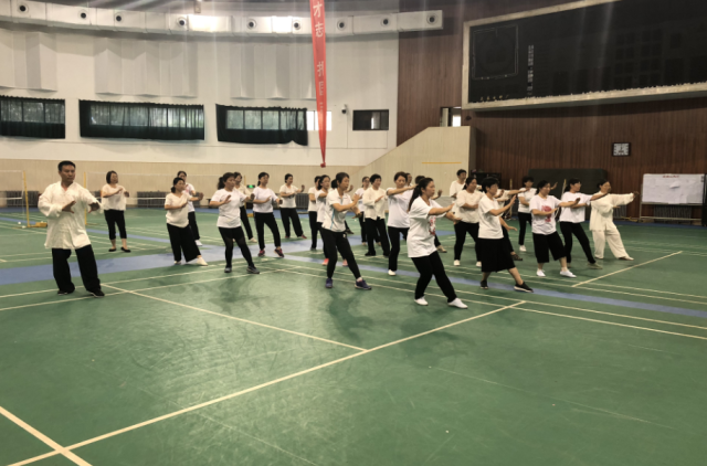 2018年7月6日,石大教工太極拳協會文藝匯演首次亮相體育館。學校黨委副書記韓克飛和工會常務副主席王仲民應邀到場觀看,并給予了高度贊揚和支持。