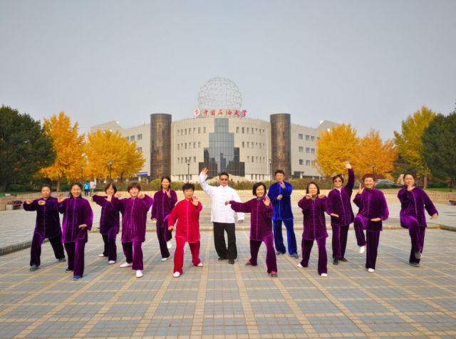 金秋時(shí)節(jié),石大校園遍染秋色,草木色彩層次多變,空氣中帶著一種清透又疏朗的味道。碧云天,黃葉地,陽光穿過云層,天空藍(lán)得明艷流轉(zhuǎn),地上鋪滿金黃的落葉,11月2日,石大太極拳協(xié)會(huì)的學(xué)員們也將課堂搬到校園中,伴著黃葉秋風(fēng),云水禪心,演一曲太極悠悠,融入這如醉的秋景。