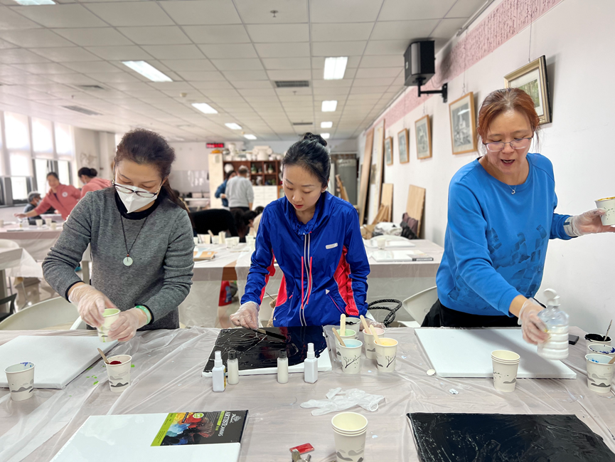] 為慶祝國際“三八”婦女節(jié),我院工會組織女教職工進行流體畫創(chuàng)作活動。流體畫是用顏料傾倒在畫面上,任其自然流淌而形成的現(xiàn)代抽象畫,呈現(xiàn)效果千變?nèi)f化,即使沒有任何繪畫基礎(chǔ),也可以畫出很驚艷的作品。在我校美術(shù)教師李玲的講解和幫助下,教師們積極創(chuàng)作,一個個充滿想象力、色彩繽紛的畫面展現(xiàn)出來,在制作過程中,老師們紛紛表示創(chuàng)作的過程輕松愉悅,陶冶情操,回味無窮,在充滿歡樂的笑聲中完成了流體畫的制作。通過本次活動,不僅使老師們的壓力得到釋放,還提高了大家的審美能力,在感受快樂與成就的同時,也激勵著教師們保持飽滿的熱情積極的投身到工作中。