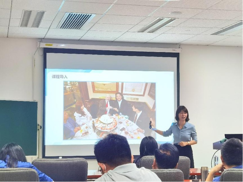 呂慧展示的課程題目為《企業合并中商譽的會計處理》,以電影《西虹市首富》片段為導入,引出天神娛樂公司的商譽減值案例,結合黑板板書,以生動的語言講解商譽的定義、形成原因、計量、減值原因以及存在的風險等內容,兼具專業性和故事性。