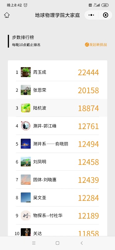 5月3日至5月25日,地球物理學院分工會開展“慶祝建國75周年,攜手奮進新征程”健步走打卡活動,借助“微信運動”小程序,組織本單位教職工開展健步走打卡活動。