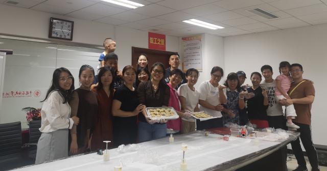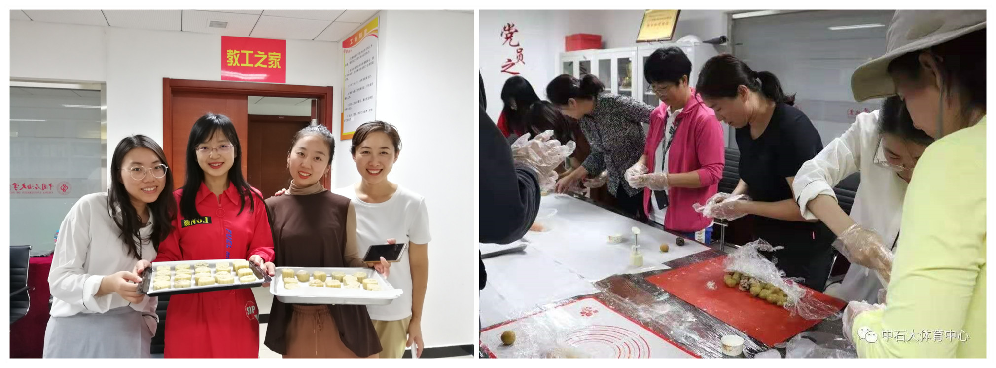 ] 中國一年一度的傳統佳節——中秋節即將到來,慶祝中秋最應景的莫過于月餅,體育與人文藝術學院邀請各位老師在9月12日于教工之家參加此次的迎中秋,做月餅活動。許多老師聞訊都前來參加,非常有興致的想要親手做出月餅,并品嘗自己制作的月餅。在工會的組織下,早上八九點老師們就已經開始忙碌了起來,大家心情激動,躍躍欲試,很快,現場就呈現出了一片繁忙景象:他們戴起手套,在馮老師的指導下揉搓面團,接著團餡料包月餅,然后壓模成型,分工協作互幫互助,氣氛和諧融洽。