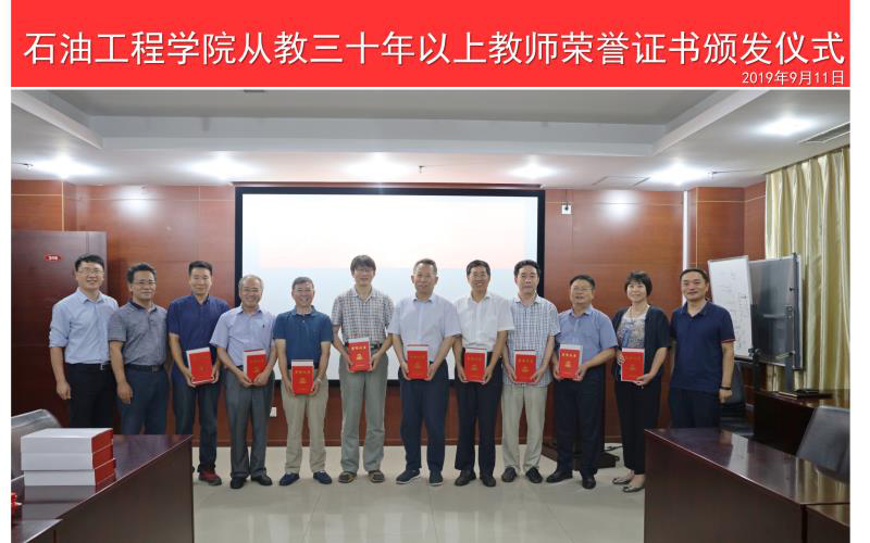 石油工程學院舉辦從教三十年教師榮譽證書和紀念獎杯頒發儀式 |
