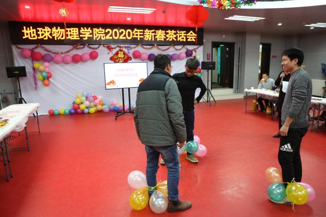 茶話會現場歌曲表演、趣味游戲和抽獎穿插進行,輔導員和院辦老師合唱了《相親相愛一家人》,贏得掌聲陣陣,大家共同祝愿地球物理學院越來越好,一家人永遠相親相愛。趣味游戲“削蘋果比賽”、“踩氣球”、“你畫我猜”引來教職工歡聲笑語此起彼伏,唐跟陽老師、安勇老師等即興演唱歌曲,把聯歡活動逐漸推向高潮。