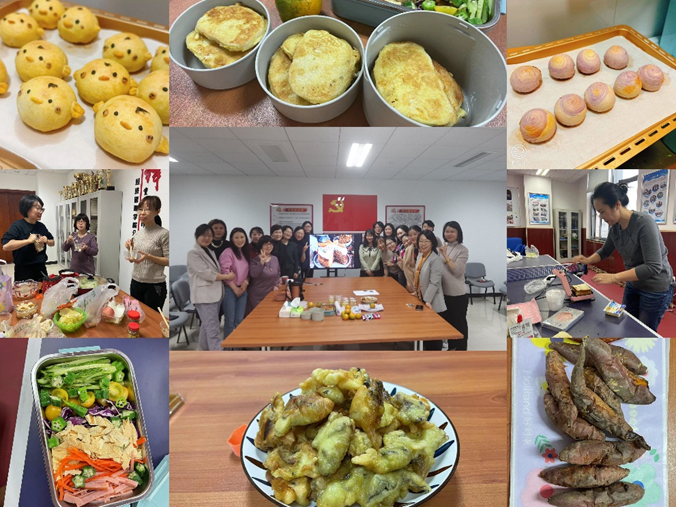 女教工們在家制作或現場制作了多種各具特色、色香味俱全的美食。有香濃可口的甜點、軟糯細膩的烤蜜薯、五彩斑斕的沙拉拼盤、酥脆可口的炸蘑菇、醬香濃郁的微波金針菇,香辣火爆的冷火鍋等。陣陣濃香誘惑著每個人的味蕾。大家從味感、觀感、質感等多方面對不同美食進行品鑒,歡聲笑語中互相介紹和學習美食制作經驗。