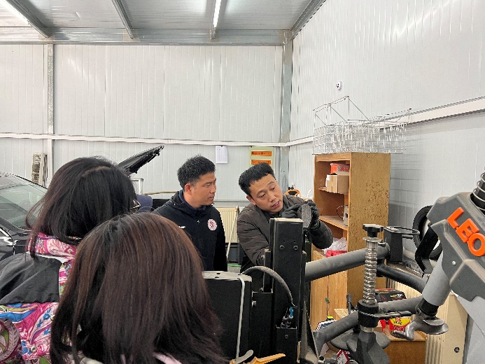 后勤的專業維修人員陳琦師傅為學院教師詳細介紹了防凍液更換、剎車片磨損、故障燈說明、車胎更換等基礎汽車知識。學院教師認真聆聽理論講解,不時動手實踐,增進了對汽車養護和使用的理解。