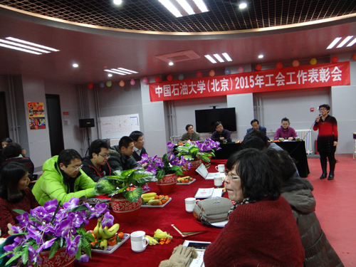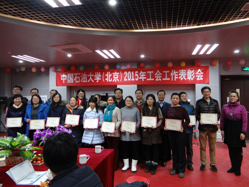 為表彰先進,推動工會工作再上新臺階,中國石油大學于2016年1月13日在職工活動中心召開2015年度工會工作表彰會,校黨委副書記、工會主席剛文哲出席會議,校工會常務副主席王仲民、校工會兼職副主席、非常規研究院副院長姜振學、校工會副主席孔繁青及各部門工會90余名工會委員參加了會議。