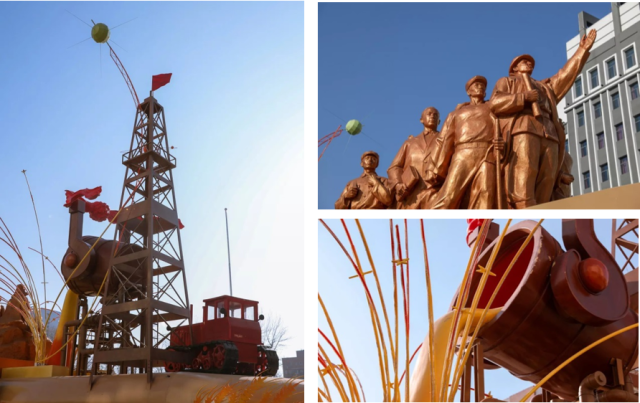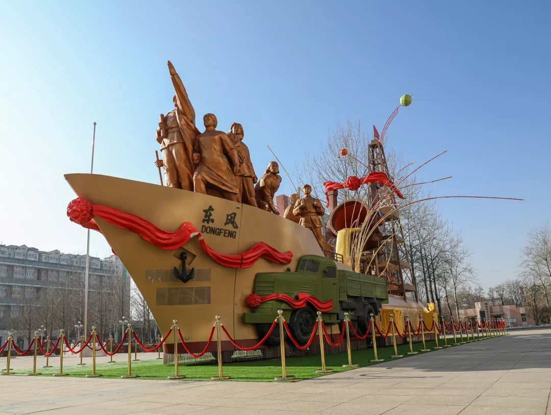“艱苦奮斗”彩車展示中華兒女滿腔豪情,在新中國一窮二白的基礎(chǔ)上,自力更生、艱苦創(chuàng)業(yè),我國社會發(fā)生了翻天覆地的變化,為中國發(fā)展富強、人民生活富裕奠定了堅實基礎(chǔ)。彩車車頭以王進喜、時傳祥等勞模群雕為主體形象,車體由新中國第一艘萬噸輪、第一輛解放卡車、第一輛東方紅拖拉機和油田井架、“兩彈一星”、豐收稻谷等構(gòu)成,彰顯建設(shè)社會主義時期的火熱的建設(shè)場景和時代精神。