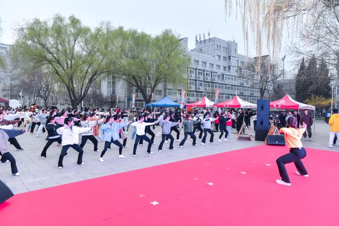 為了增加活動參與度,此次大賽還增加了養生八段錦體驗和廣場舞環節。現場師生共同學習養生八段錦,隨著動感的音樂歡快舞蹈。