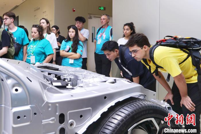 6月30日,參加中國石油大學(北京)夏令營的外國高校師生在北京參觀小米汽車超級工廠。王紫儒 攝