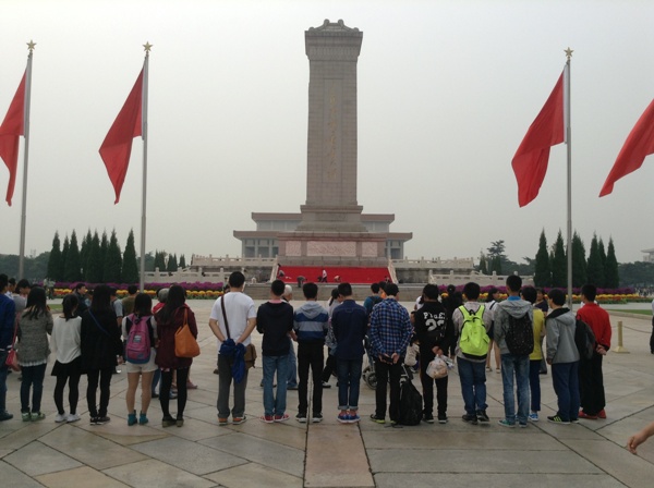 清晨,全體成員來到了天安門廣場,先后瞻仰了毛主席紀(jì)念堂和人民英雄紀(jì)念碑。在毛主席紀(jì)念堂,同學(xué)們緩將手里的菊花肅穆地擺放在紀(jì)念堂前。在人民英雄紀(jì)念碑前,黨支部成員站成一列默哀,緬懷那些逝去的人民英雄,并向他們表達了敬意。
