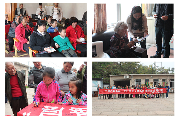 10月19日,中國石油大學(北京)“中國夢•社會主義核心價值觀”學習踐行團聯合本石工2013級黨支部深入昌平區延壽鎮湖門村開展社會主義核心價值觀宣講活動。