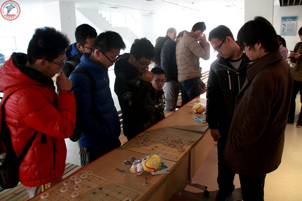 比賽中,參賽者紛紛前來破解棋類愛好者協(xié)會精心籌劃、準(zhǔn)備已久的殘局。第一位挑戰(zhàn)者雖然技巧嫻熟,但是由于急于求成,再加上殘局本身難度較大,不久便敗下陣來。與此同時,旁邊的幾盤殘局也陸續(xù)有人前來挑戰(zhàn),各個棋盤上都是風(fēng)云變幻,各個選手開動腦力,認(rèn)真思索,積極討論。挑戰(zhàn)者還和守局者交流經(jīng)驗(yàn),探討棋藝上的心得,感受到了象棋文化的博大精深,也為 “國學(xué)文化月”畫上了句號。