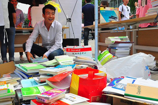 5月27日中午,由學(xué)生工作處、后勤管理處、公寓服務(wù)公司主辦,研究生民管會(huì)承辦,石大創(chuàng)行和新青年雜志社協(xié)辦的“畢業(yè)傳承,書(shū)卷余香”廢舊書(shū)本回收活動(dòng)在南廣場(chǎng)舉行。