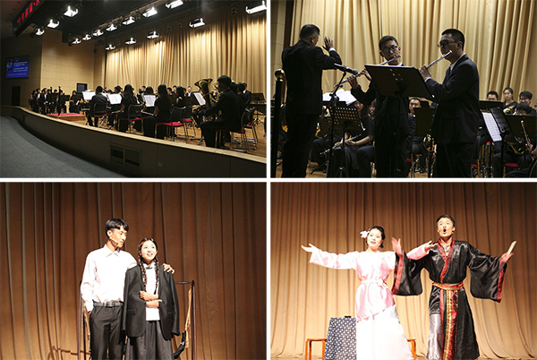 在民樂·朗誦專場中,民樂團(tuán)演奏了《光明行》《闖將令》《旱天雷》等傳統(tǒng)器樂合奏,以及由團(tuán)員們編排的《奇跡》《歡沁》《龍貓》等現(xiàn)代風(fēng)格的樂曲,讓在場師生感受了濃濃的民族韻味;朗誦團(tuán)帶來了精心準(zhǔn)備的《我們的祖先叫炎黃》《山河戀》《歸來》等節(jié)目,用聲音的魅力感染著在場的每一位觀眾。舞蹈·合唱專場中,舞蹈團(tuán)帶來了《金陵十三釵》《雨中花》等大型群舞和一段改編自電影《紅高粱》的獨舞《九兒》,給觀眾呈現(xiàn)了一場視覺盛宴;合唱團(tuán)帶來了大合唱《雪花》《哆來咪》,用阿卡貝拉的演繹形式表演了《平凡之路》和《lolipop》,歡樂的歌聲博得了觀眾的陣陣掌聲。街舞專場中,街舞社的學(xué)生們展示了Poppin、Hiphop、Locking和Breaking四種類型的街舞表演,勁爆的音樂和高難度的動作讓現(xiàn)場動感十足。在管弦樂團(tuán)專場演出中,管樂團(tuán)演奏了經(jīng)典電影主題曲《美女與野獸》《Let it go》《銀城爭霸》;弦樂團(tuán)攜手管樂團(tuán)帶來了《第一交響曲》《肖斯塔科維奇第二圓舞曲》等經(jīng)典曲目,為石大師生送上了一場高水平的音樂會。在藝術(shù)展演閉幕式暨話劇專場演出中,話劇團(tuán)表演了經(jīng)典話劇《暗戀桃花源》,環(huán)環(huán)相扣的劇情和精湛的演技,展現(xiàn)了石大學(xué)子的舞臺表現(xiàn)力。