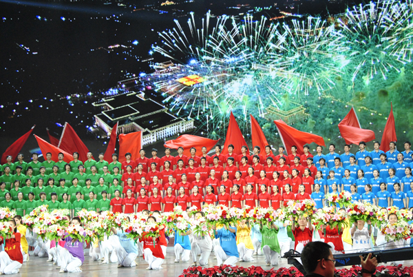石大學生參加合唱《迎風飄揚的旗》
