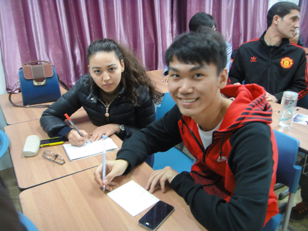 當前位置: 首頁» 菁菁校園 石大外國語學院青協開展漢語角活動 發布時間:2014-03-24 | 來源:外國語學院 | 作者:曹學敏 | 瀏覽量: 為幫助留學生提升漢語發音水平,了解中國新年文化,探索成語奧秘,3月20日,石大外國語學院青協在一教103開展本學期首次漢語角活動,本次活動的主題為“人體器官”,主要采取一對一的形式進行討論。 活動中,志愿者給留學生帶來了優美的舞蹈、“新年歌”等精彩的節目。主持人還教大家一些帶有人體器官名稱的成語,志愿者則針對留學生的實際情況,進行解答疑惑,指導發音。 分享到: 排行榜 薦讀 中石大召開2024年全面從嚴治黨工作部署會暨... 對口支援中國石油大學(北京)克拉瑪依校區工作... 中石大獲評 “昌平區學習型示范高校” 中國石油大學2022年十大新聞揭曉 新年賀詞 | 雄關漫道 惟有登攀
