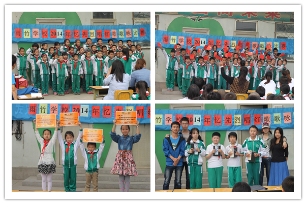 比賽中,黨支部成員擔任評委、記分員,并負責整個活動的攝影和場務工作,雨竹小學十四個班級依此上場演唱。最終一年級2班表演的《小松鼠快長大》獲得一年級組一等獎,二年級1班的歌曲《打靶歸來》獲得二年級組一等獎,四年級1班的額《北京的金山上》獲得三四年級組一等獎,五年級1班表演的《士兵小唱》獲得高年級組一等獎。