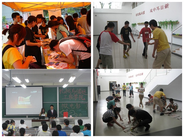 本次活動主要包括“電影健心”、“微電影健心”、“室外健心”三個部分。“電影健心”分別在三教108和111教室播放了《逆光飛翔》和《聽說》兩部電影,并設置了有獎問答環節。“微電影健心”在三教103教室播放了“親情,友情,愛情,夢想”四大主題的微電影。在“室外健心”活動中,四支隊伍在學生活動中心地下一層進行了無敵風火輪和齊眉棍兩項游戲的比拼,最終儲運2012-3班奪得冠軍,機械2012卓越班獲得亞軍。