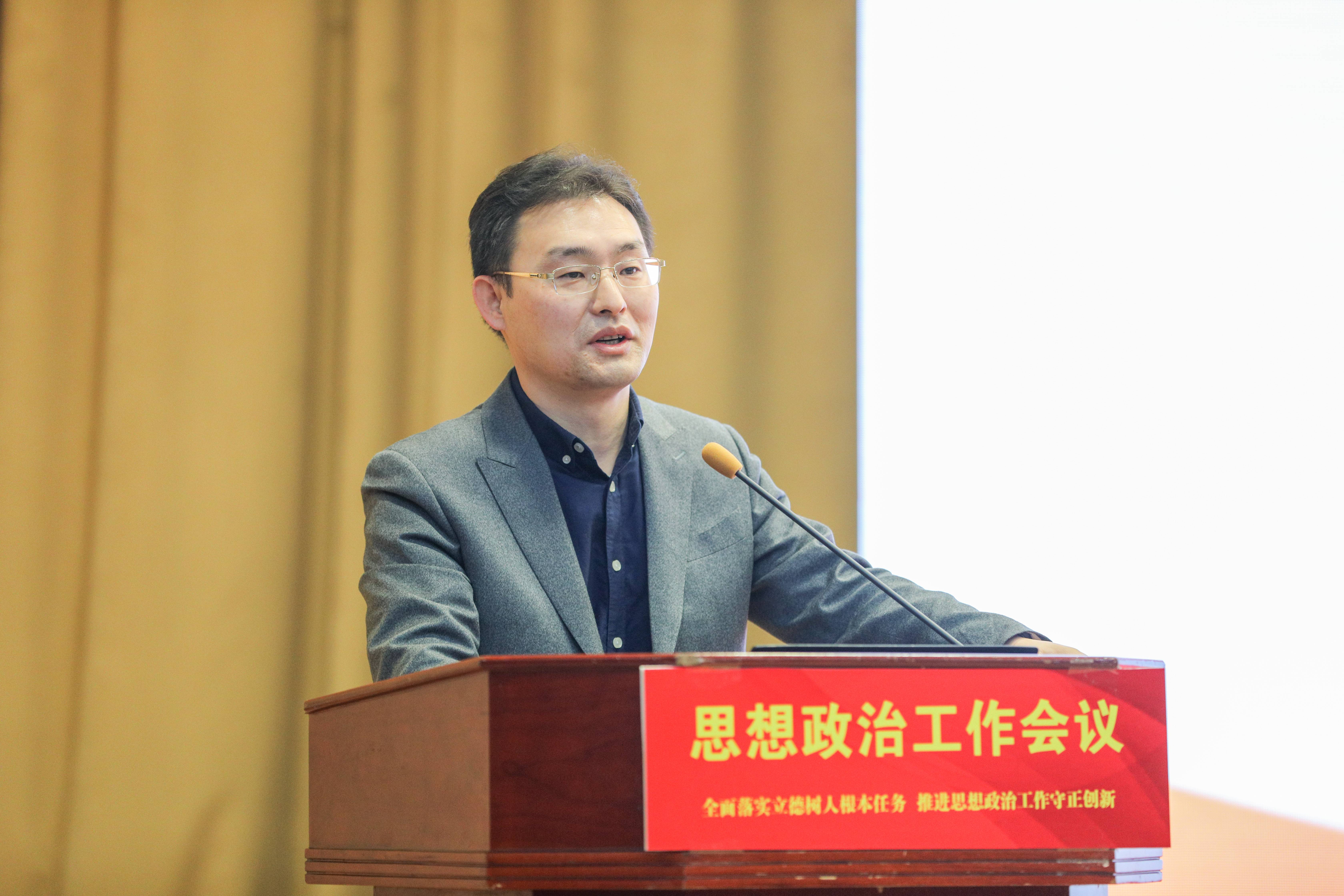 黨委書記陳峰以“緊扣立德樹人根本任務(wù) 推進(jìn)思政工作守正創(chuàng)新 努力培養(yǎng)德智體美勞全面發(fā)展的社會主義建設(shè)者和接班人”為題作了大會講話,深入分析了當(dāng)前學(xué)校思想政治工作面臨的形勢和任務(wù),強(qiáng)調(diào)要從世界百年未有之大變局、黨和國家事業(yè)發(fā)展全局,從建設(shè)社會主義現(xiàn)代化強(qiáng)國、實現(xiàn)中華民族偉大復(fù)興的高度來認(rèn)識和落實立德樹人根本任務(wù),推進(jìn)思想政治工作守正創(chuàng)新。