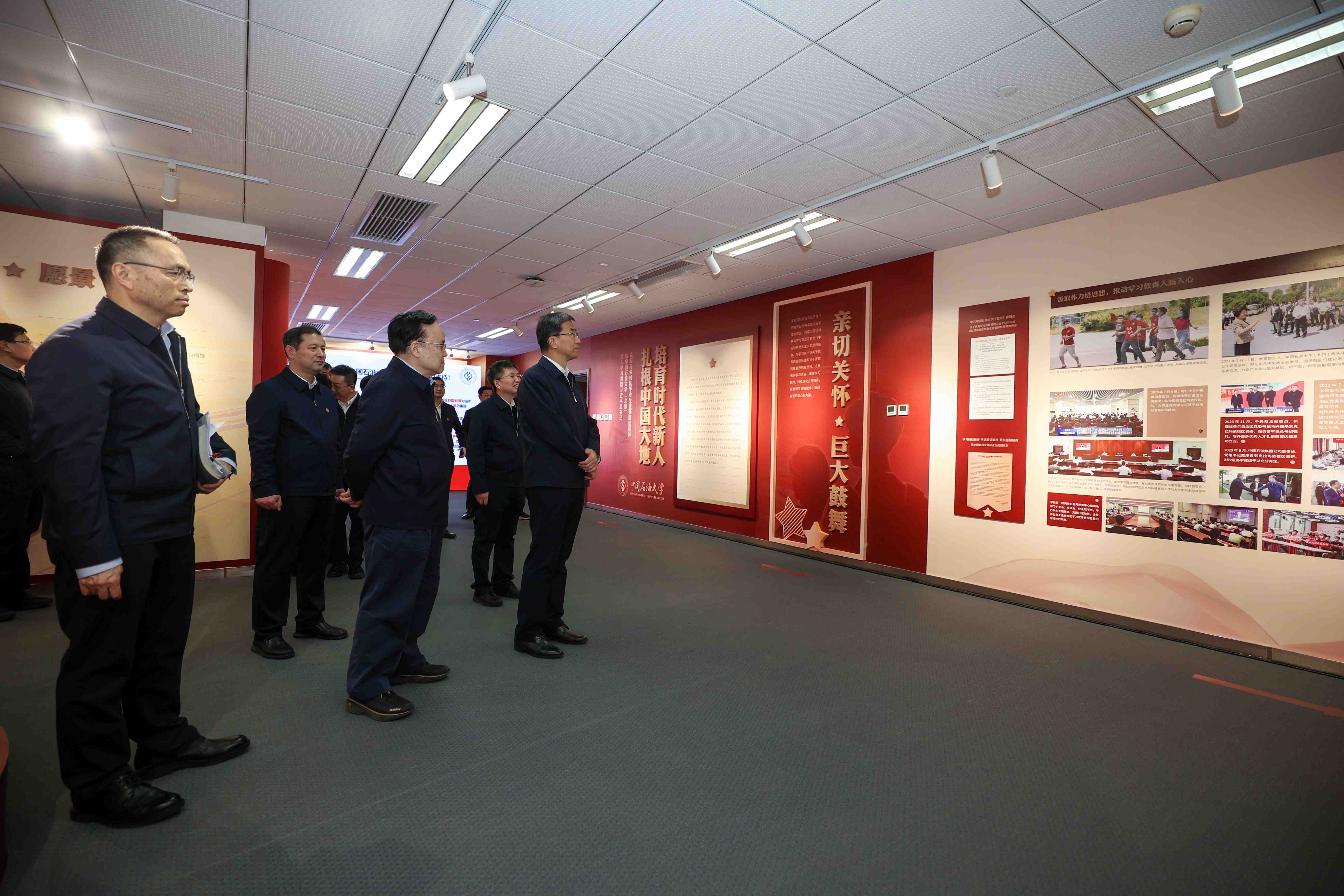 在中國石油大學(北京),懷進鵬深入國家卓越工程師學院,聽取了學院建設情況匯報,詳細了解了學院的建設理念、建設任務、學科布局、導師隊伍建設、課程與教材建設、校企協同培養和協同攻關、評價和保障體系建設、工程技術中心建設等情況。在油氣資源與工程全國重點實驗室,懷進鵬聽取了實驗室推進科技創新、開展科研攻關情況匯報,參觀了油氣勘探開發上游系列大型實驗裝置和設備,詳細了解了沉積水槽實驗平臺、石油工程巖石力學實驗平臺、井孔地球物理測井平臺、大型氣浮三維地震物理模型實驗系統等取得的科研成果和成果轉化應用情況。懷進鵬聽取了學校實施開放融合戰略,落實國家教育對外開放重大部署、服務我國石油工業“走出去”情況以及中巴教育國際交流合作情況匯報,參觀了學校“勇擔時代使命 矢志能源報國”學習貫徹習近平總書記重要回信精神主題展廳。