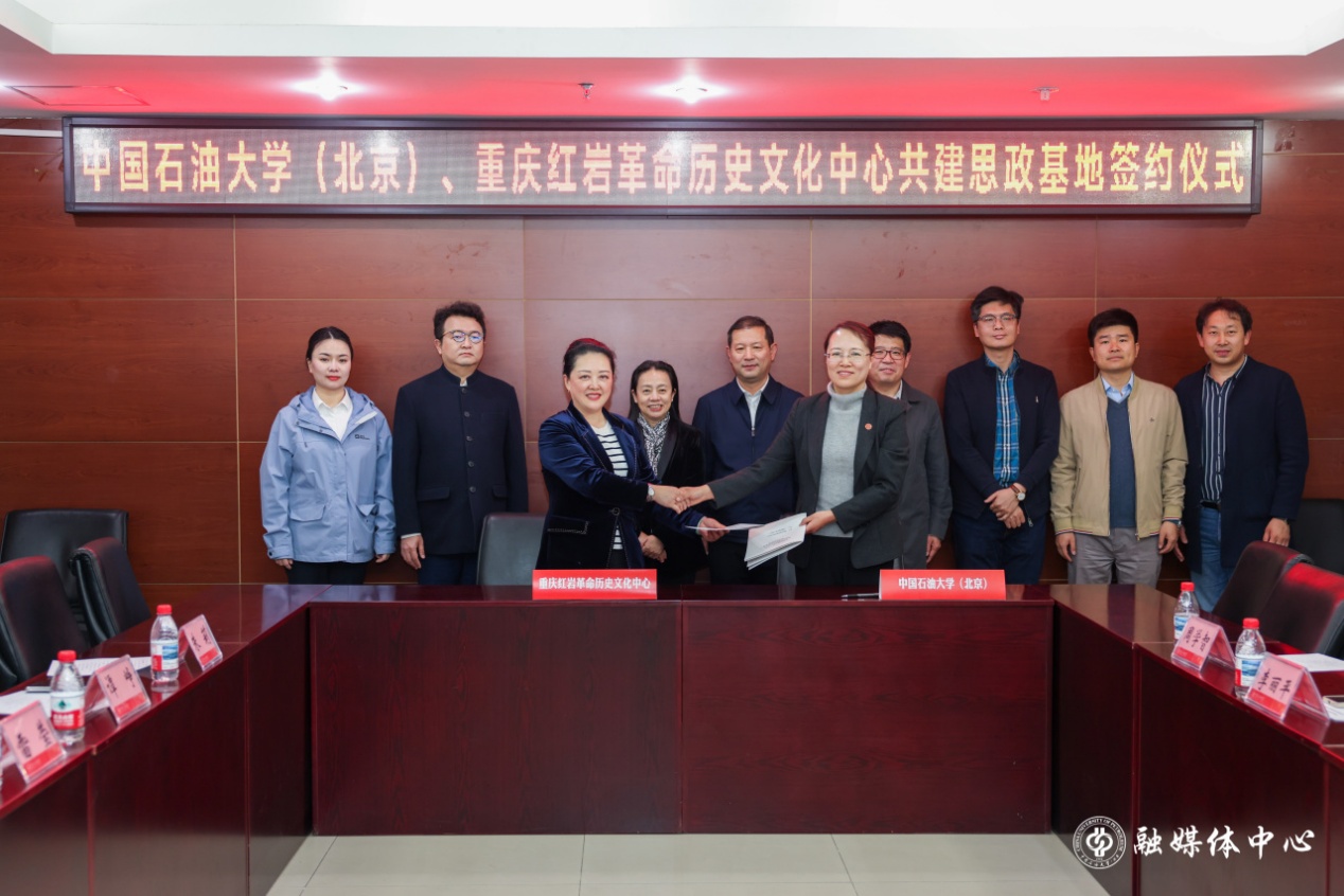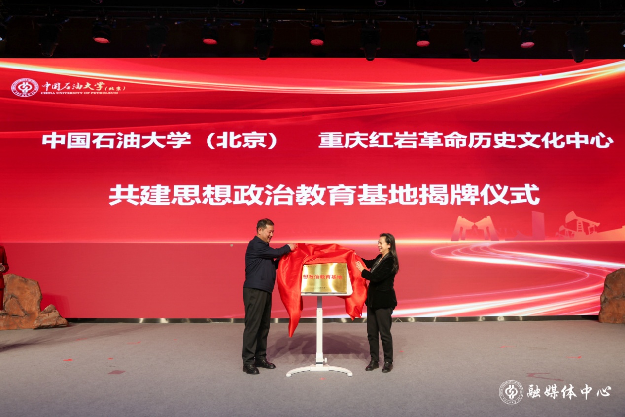 演出前,學校與重慶紅巖革命歷史文化中心簽署合作協議,共建思想政治教育基地。王同奇、雷瑩共同為“中國石油大學(北京)思想政治教育基地”揭牌。