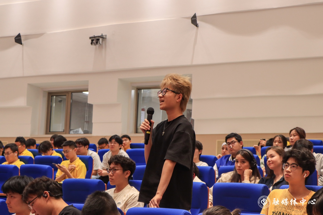 李曄分享了自己在戲劇創作中的心得體會,通過回顧經典角色的塑造過程、現場示范表演等,深入剖析了演員如何通過細節打磨角色,將劇本中的文字轉化為有血有肉的人物表演。談及戲劇的魅力時,他動情地說:"劇場是美育最生動的課堂,在這里,人與人的直接交流創造著瞬間的永恒。演員與觀眾共同呼吸的審美體驗,是任何數字技術都無法替代的。"他特別提到,在當代高校美育體系中,劇場藝術具有三大不可替代的價值:培養共情能力、提升審美素養、激發創新思維。