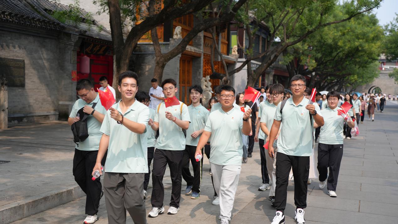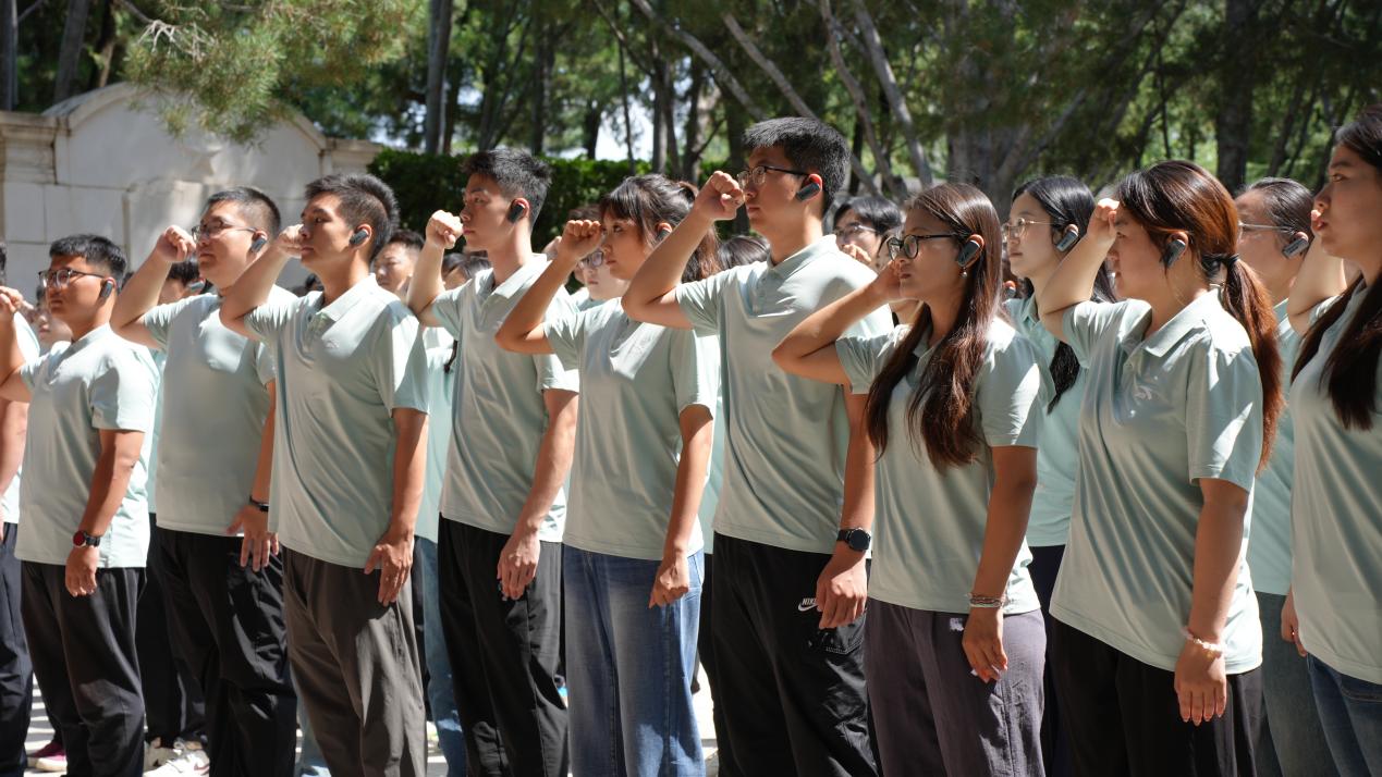 8月14日,青年懷著崇敬之心,步入莊嚴肅穆的中國人民抗日戰爭紀念館。在講解員的引導下,同學們緩緩穿行于記錄烽火歲月的展廳。一張張珍貴的歷史圖片、一件件承載民族記憶的文物、一段段感人至深的英雄事跡,都在無聲訴說著中華民族那段不屈抗爭的壯麗史詩。參觀結束后,同學們在展館門前整齊列隊,精神抖擻地共同唱響《歌唱祖國》,嘹亮而深情的旋律在紀念館前回蕩,歌聲穿越時空、連接歷史與當下,振奮著每一位愛國青年的精神。