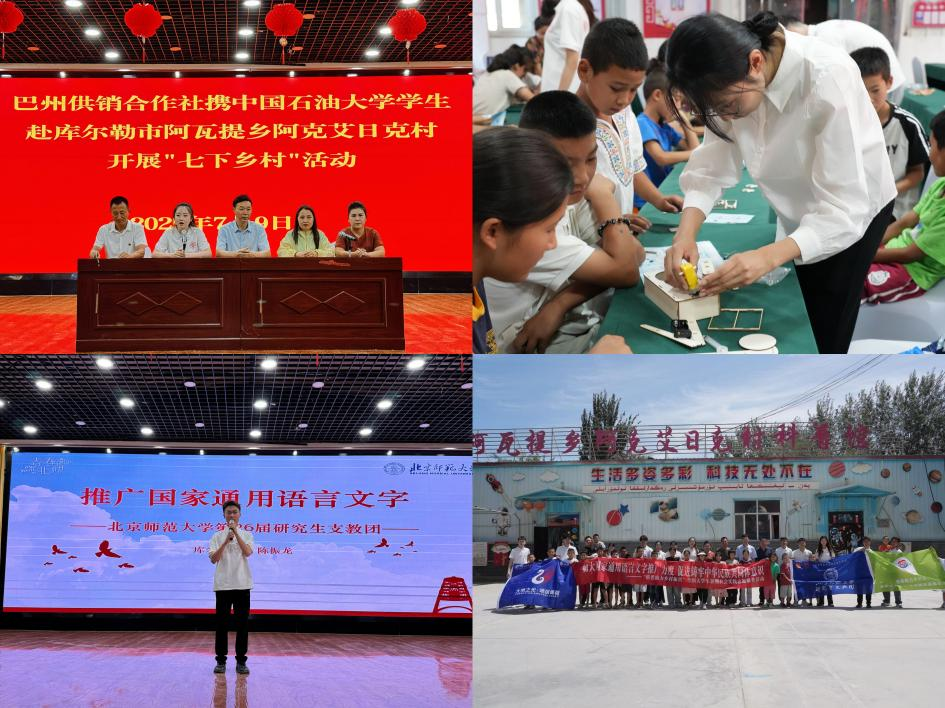 “今天大哥哥、大姐姐們給我們上課,我學到了很多科學知識。希望以后他們還能來。”7月9日,實踐團聯合北京師范大學研究生支教團,在庫爾勒市阿瓦提鄉阿克艾日克村開展“七下鄉村”活動,通過開設國家語言文字推廣、地質科普宣講、科學趣味實驗、素質拓展活動等多樣化的課程,豐富了當地少數民族學生的生活,加大了國家通用語言文字在邊疆少數民族地區的推廣力度。