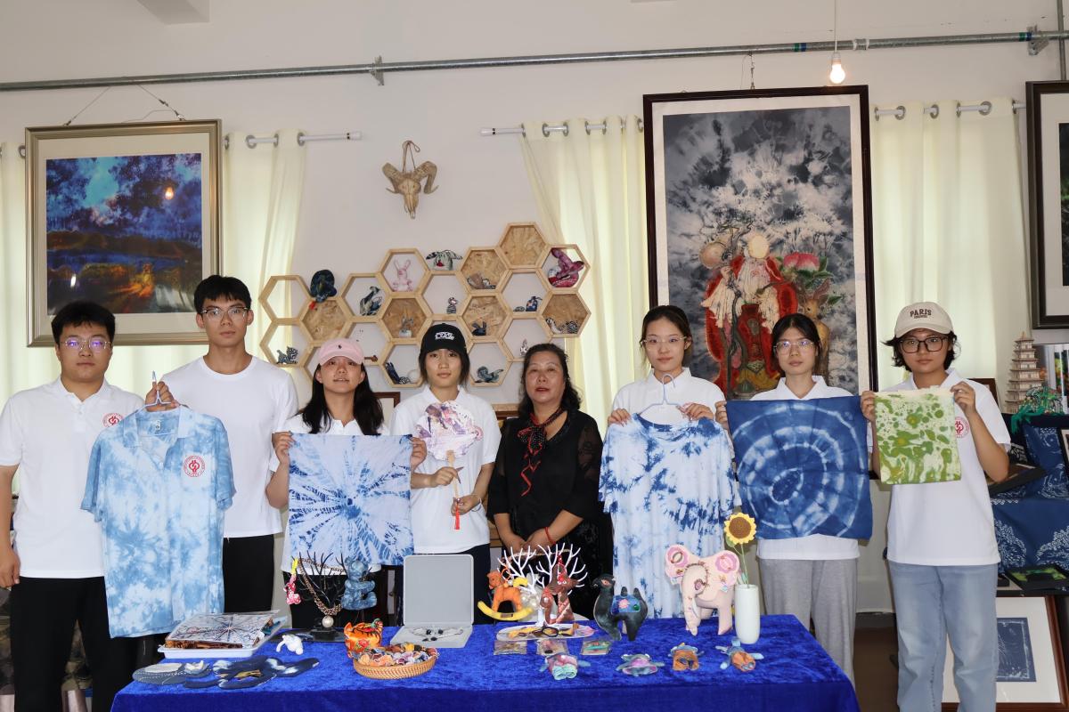 實(shí)踐團(tuán)深入蘭州仁壽山非物質(zhì)文化遺產(chǎn)傳習(xí)基地。在扎染工坊,省級非遺傳承人管蘭欣展示了“扎、染、曬”等傳統(tǒng)工序,成員們親身體驗(yàn)從扎花定型到浸染氧化的全過程。藍(lán)白相間的紋樣在布料上自然暈染,每一件作品都是傳統(tǒng)智慧與現(xiàn)代審美的完美融合。團(tuán)隊(duì)還探訪了市級根雕傳承人甘博,感受“化腐朽為神奇”的藝術(shù)哲學(xué)。甘博以刀為筆,依形就勢,將枯木雕琢成游龍、隱士等栩栩如生的作品。他深耕技藝二十余年,創(chuàng)辦根雕藝術(shù)館,培養(yǎng)年輕匠人,讓這門千年非遺在新時(shí)代煥發(fā)生機(jī)。