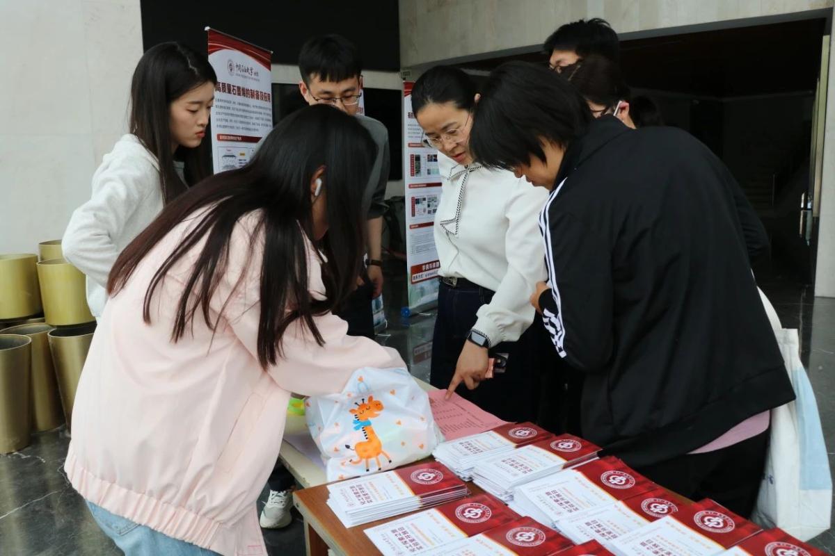 活動分為課題組展示、實驗室參觀兩大板塊。在化工樓A座前的課題組展示區(qū),環(huán)境微生物、分離工程等課題組通過海報展示了課題組研究方向、團隊成員及代表性科研成果;志愿者協(xié)助發(fā)放集章卡,引導(dǎo)學(xué)生有序參觀并參與互動問答。