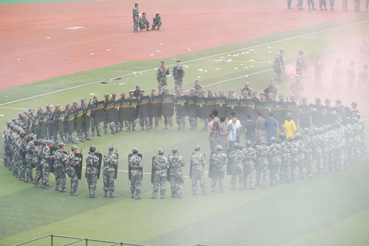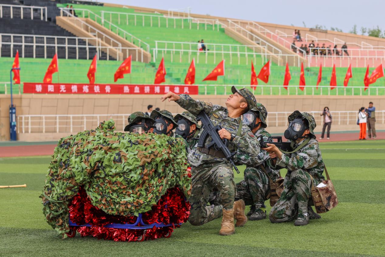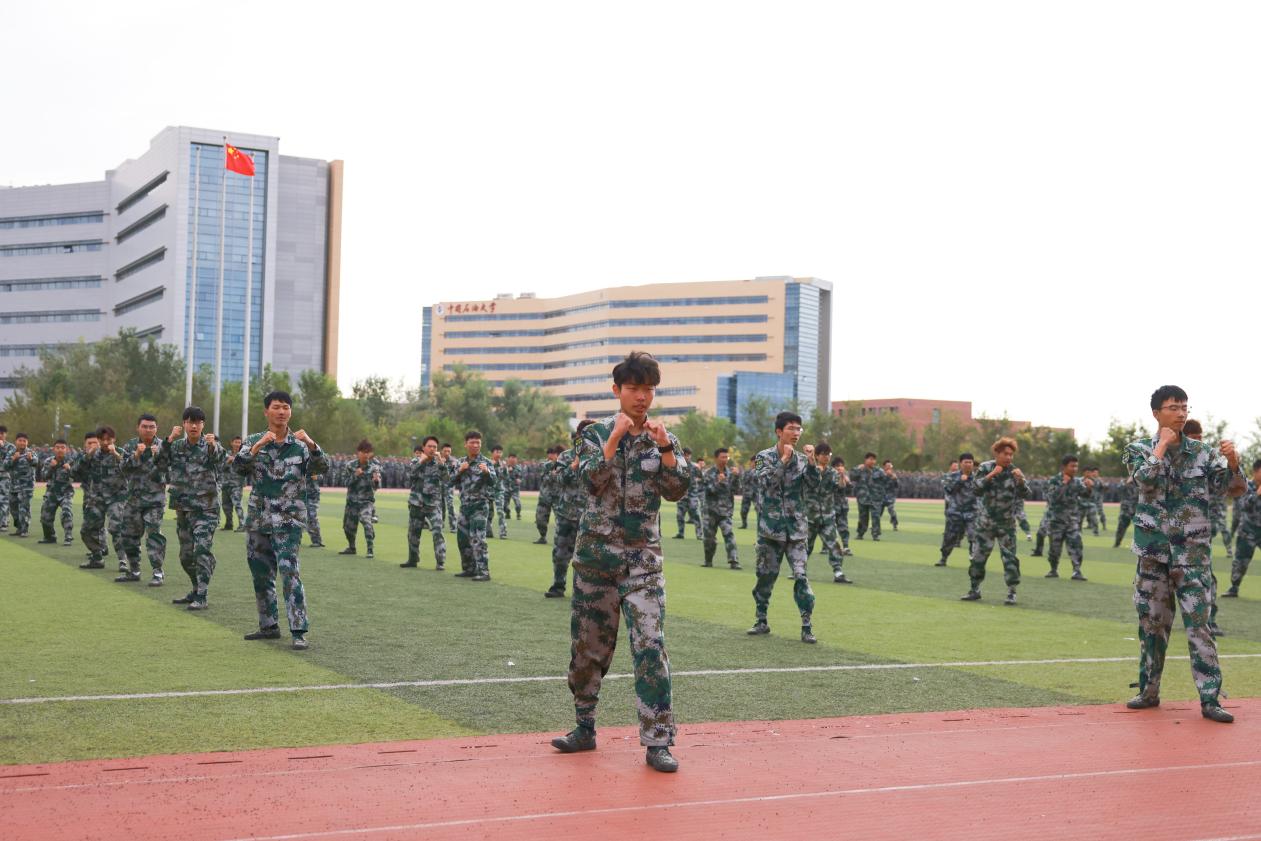 2025級新生進行了一場精彩的軍訓匯報表演。表演中,他們展示了在軍訓期間學到的各種軍事技能和戰術動作,包括擒敵拳、刺殺操、警棍盾牌術、綜合戰術演練等科目,展現出中石大青年愛國愛校、奮發有為的堅定決心。