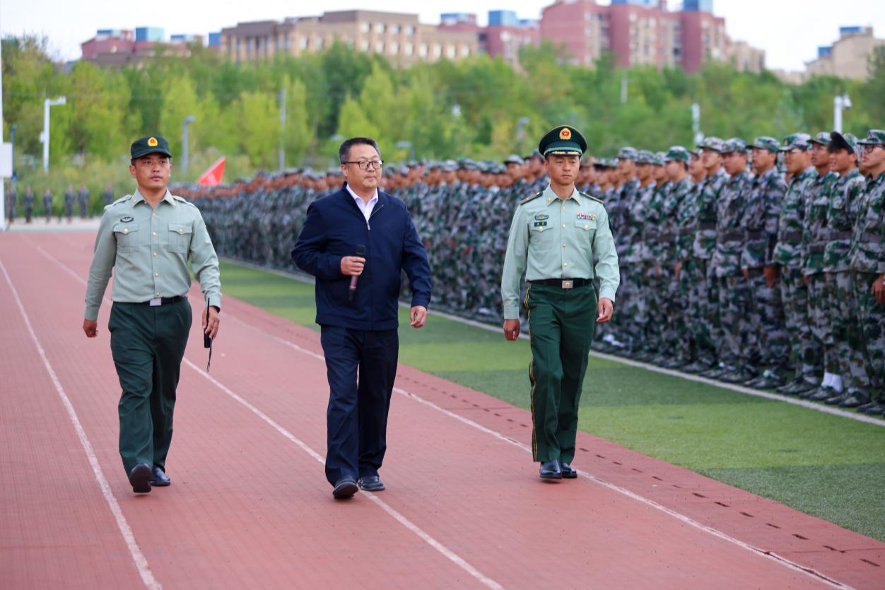 迎校旗儀式后,克拉瑪依校區黨委書記、校長李軍檢閱軍訓團。同學們精神抖擻、口號響亮,展現出中石大學子昂揚向上的精神風貌。