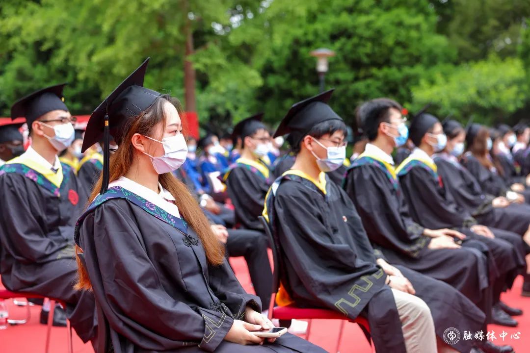 典禮主會場校本部青年園綠草如茵、紅毯奪目、旗幟飄揚,氛圍熱烈而隆重。2022屆在校的畢業(yè)生代表與師長們在現(xiàn)場共襄慶典,已離校的5000多名博士、碩士和本科畢業(yè)生通過“云端”參加典禮,共同接受母校和師長的祝賀與祝福。