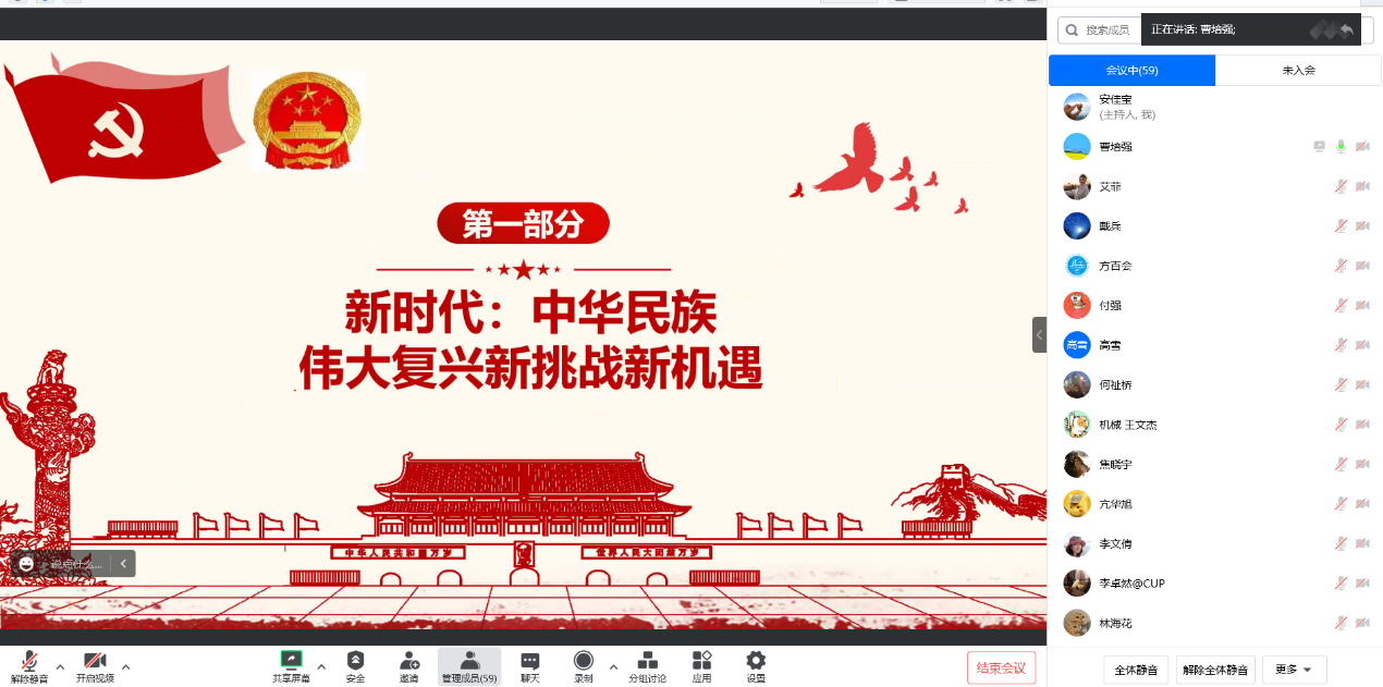 馬克思主義學院曹培強教授作了題為“為了中華民族的偉大復興——黨的二十大精神解讀”的專題報告。曹培強從對“民族”一詞的解讀入手,圍繞“新時代:中華民族偉大復興新挑戰機遇”“新布局:中國式現代化的‘能源格局’”“新征程:中華民族偉大復興的青年新局”三個方面展開系統闡述。報告語言生動、事例鮮活,對于大家深刻學習領會習近平總書記關于加強和改進民族工作的重要思想,不斷深化對鑄牢中華民族共同體意識教育重要性和必要性的認識提供了啟發和借鑒。