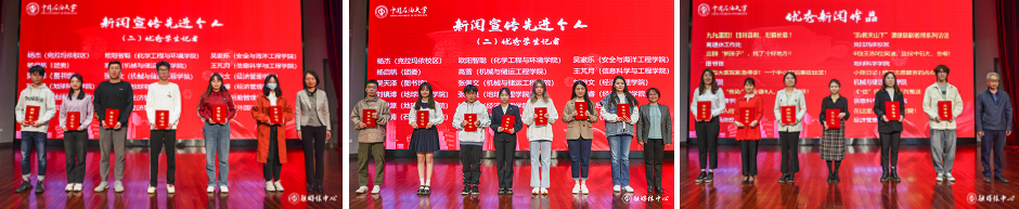 陳峰、韓克飛及相關(guān)職能部門負(fù)責(zé)人為新聞宣傳工作先進(jìn)單位代表、優(yōu)秀宣傳案例代表、先進(jìn)個(gè)人代表、優(yōu)秀新聞作品獲獎(jiǎng)代表以及獲評(píng)校園文化建設(shè)優(yōu)秀項(xiàng)目代表等頒獎(jiǎng)。