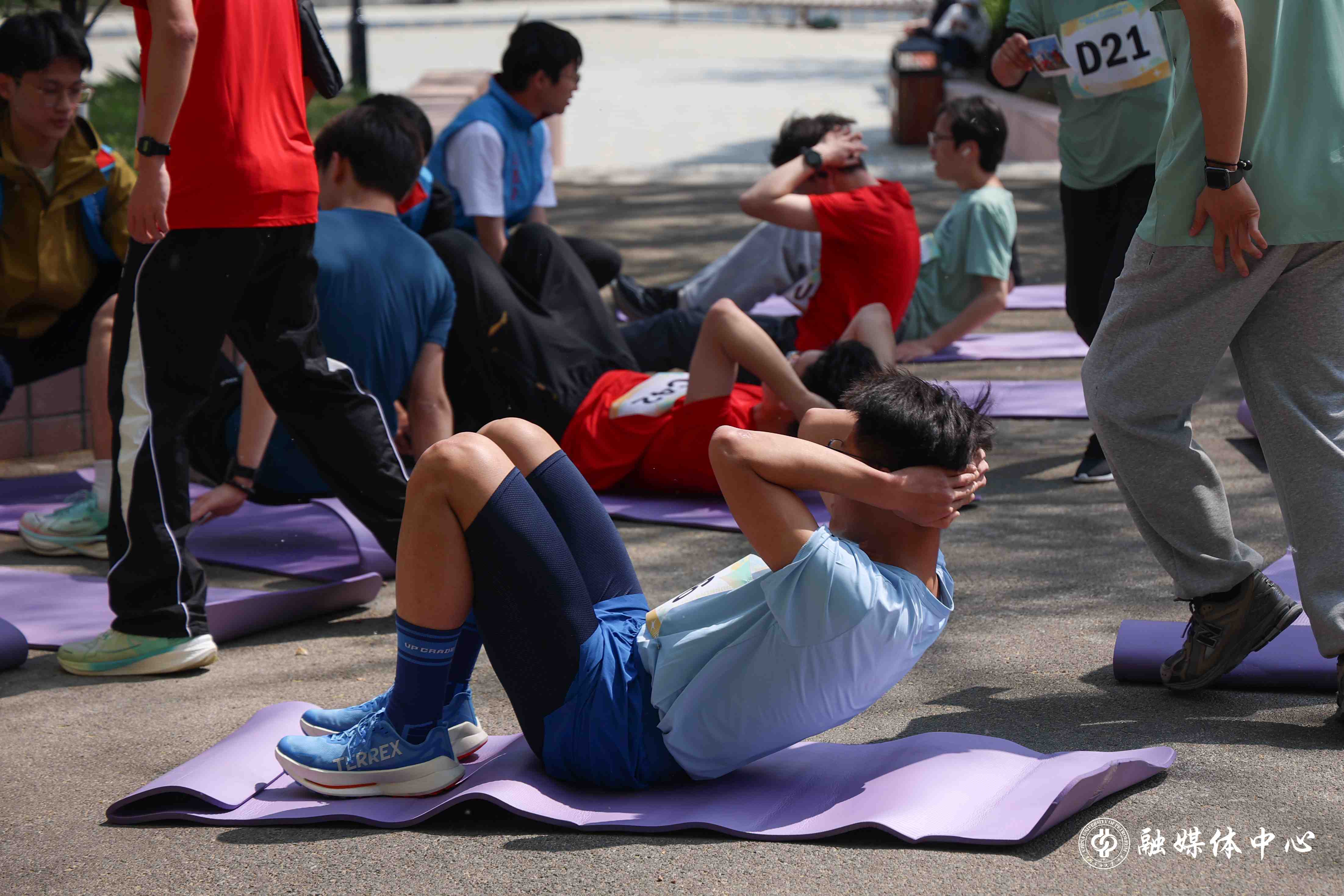 開幕式后,苗浩進行主題分享,并帶領同學們進行賽前熱身。隨著發令槍響,挑戰賽正式開始。挑戰賽有針對性地融入了多項學生體能測試內容,參賽選手需繞校園3圈,并在第2圈內完成跳繩、跨欄、小輪車、仰臥起坐、深蹲等7項打卡任務。