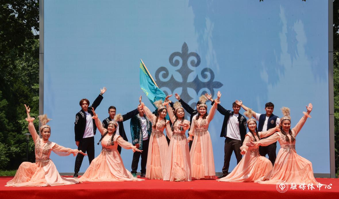 本屆文化節特別邀請60名中外青年學子,穿著各國傳統服飾,在舞臺上展示青春風采,圍繞學校噴泉廣場完成多元文化巡游。巡游過程中,青年學子高舉“踐行回信精神,做好友誼使者”“講好中國故事”“民相親,心相通”等手持牌,跟隨音樂節拍與在場觀眾熱情互動。