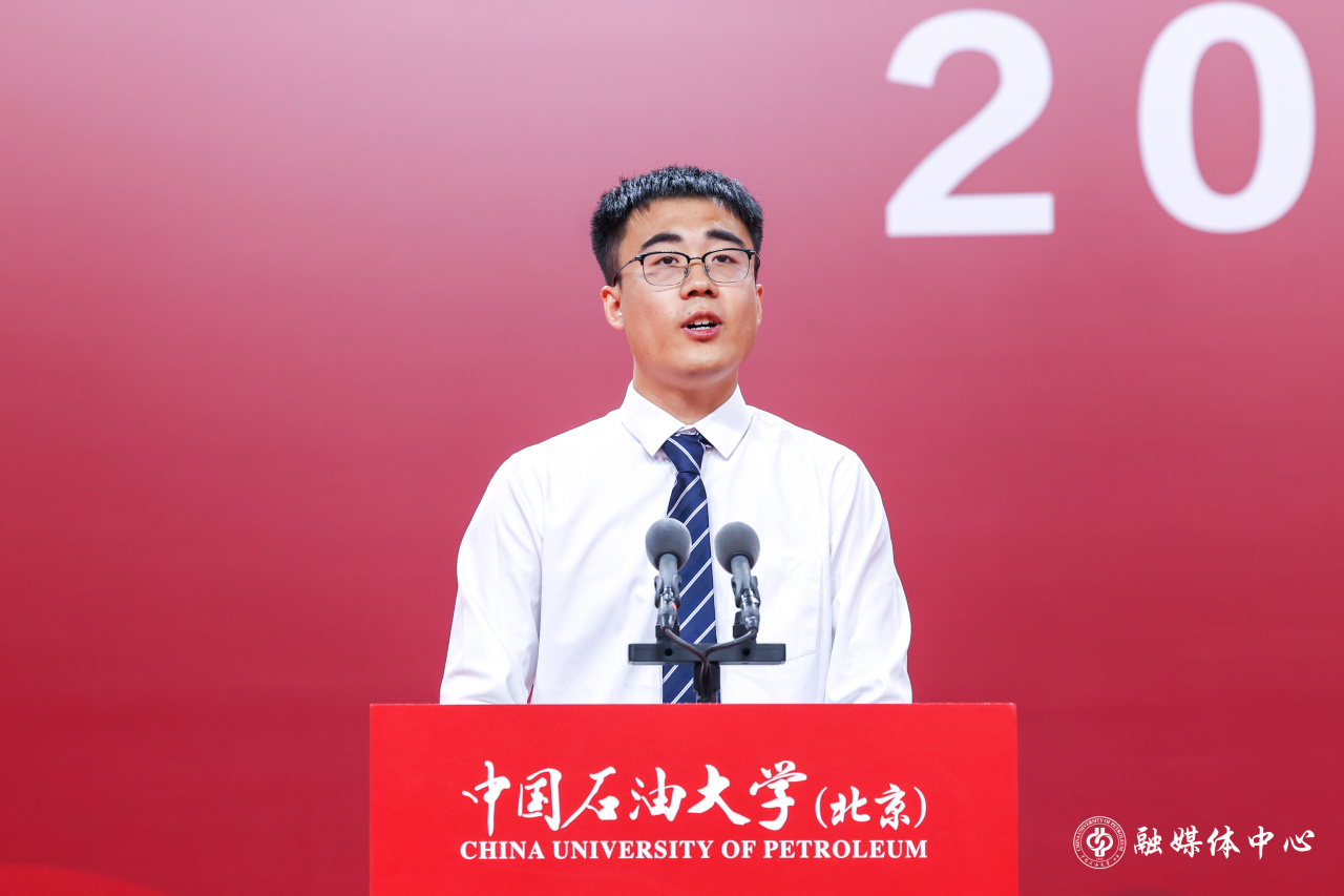 畢業本科生代表、克拉瑪依校區張茂沅,畢業研究生代表、校本部新能源與材料學院博士生李響分別發言,表達了對母校、師長的感恩和對同窗、朋友的不舍,分享了學習和科研中的感悟,表示將秉持家國情懷,志不求易、事不避難,以奮斗之姿挺膺擔當,鐫刻中石大人的時代勛章。