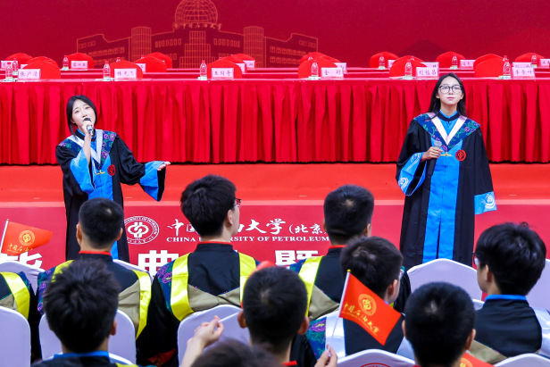 校領導王同奇、金衍、韓克飛、劉植昌、張廣清、李景葉、黃磊、李軍,各學院(研究院)、相關職能部門負責人以及師生代表、家長代表等參加典禮。典禮通過新華社、新華網、人民日報、中國青年報、中國石油報客戶端、新媒體矩陣以及學校視頻號、抖音、微博等平臺進行直播,近60萬人次觀看了典禮直播。