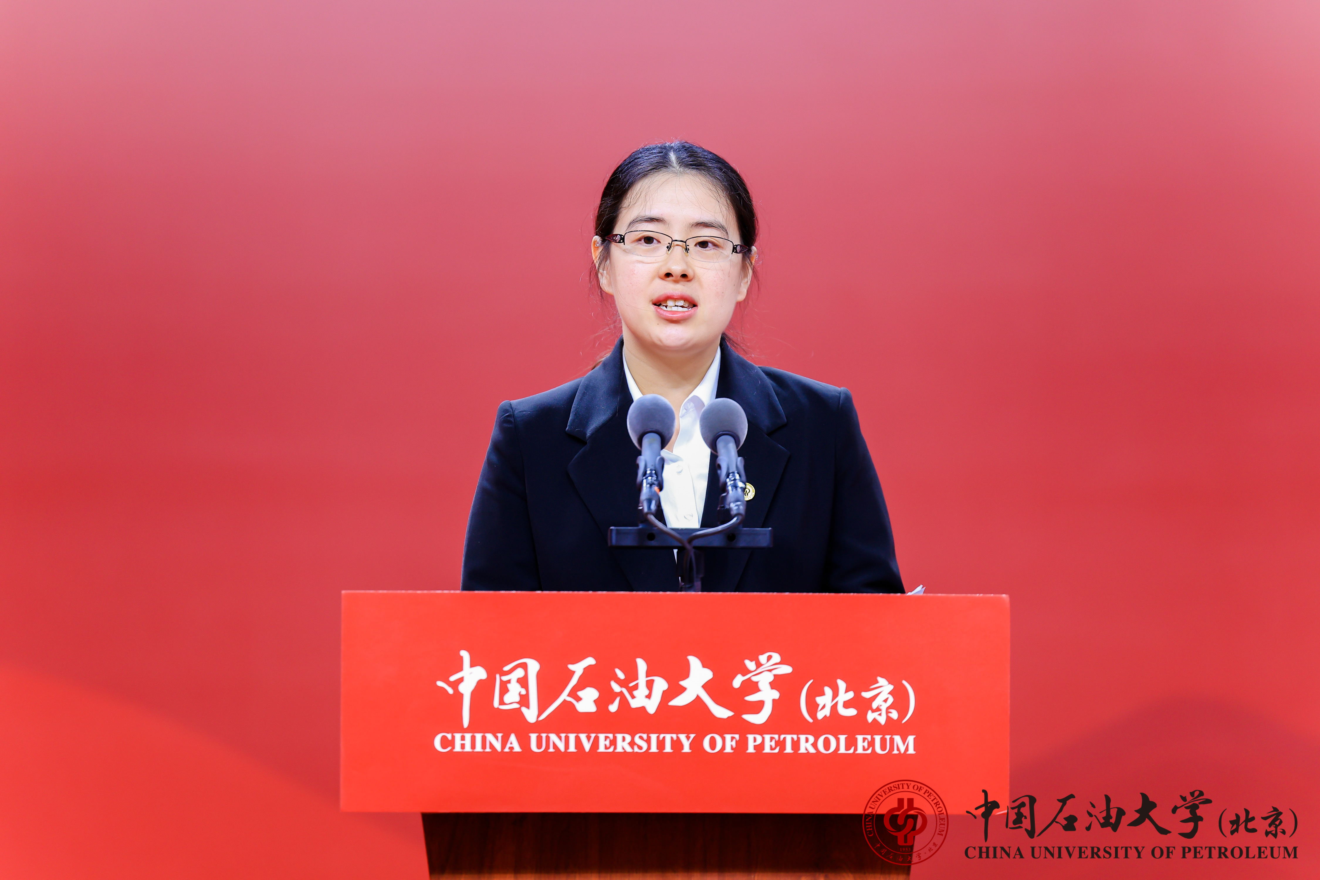 校友代表、現就職于中國石油勘探開發研究院的張婧雅結合自身工作奮斗經歷,分享成長感悟,勉勵畢業生們心懷感恩、堅定信念,懷揣夢想、砥礪前行,立志報國、扎根一線,在奉獻中綻放青春光彩,在奮斗中書寫強國有我的輝煌篇章。