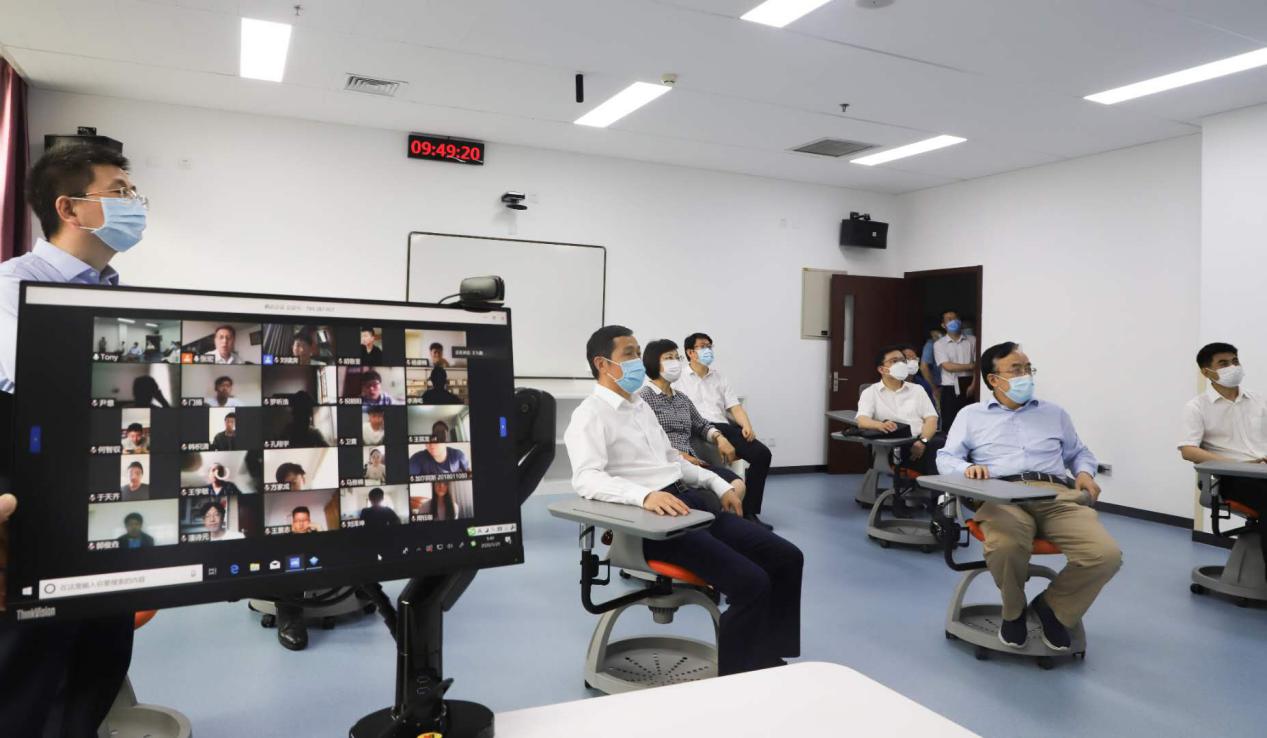 鐘登華副部長一行首先實地查看校園安防情況。在中控室,他詳細了解了校園安防特別是疫情期間校園防控情況。隨后,在第四教學樓智慧教室,鐘登華副部長現場觀摩了張宏教授《管道與儲罐強度》線上授課情況,并與老師和同學進行了在線交流,向大家表達親切問候,充分肯定了教師線上授課工作和同學們線上學習熱情以及學校線上教學取得的成效。