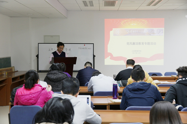 12月11日上午,石大工商管理學院在主樓B1118會議室開展黨風廉政專題教育活動,工商管理學院黨委書記殷建平,院長郭海濤,黨委副書記羅曉燕,副院長沈慶寧、馬春愛,以及師生代表參加活動。