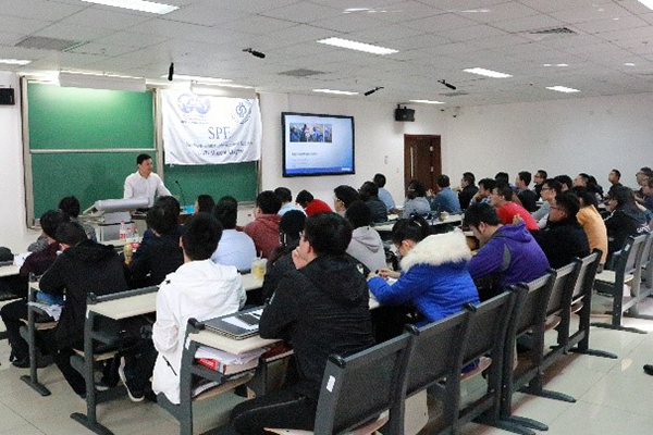 4月11日下午,由石大石油工程學(xué)院主辦,SPE學(xué)生分會(huì)承辦的“蟒山講壇——石工分講壇”第二期—斯倫貝謝專場(chǎng)活動(dòng)在第四教學(xué)樓舉行。斯倫貝謝北亞區(qū)鉆井集團(tuán)市場(chǎng)部總經(jīng)理陳哲互、北亞區(qū)鉆井工程中心經(jīng)理黃南、鉆頭和井下工具部門客戶經(jīng)理黃凱、巖石物理學(xué)專家周欣、油藏專家張磊,石油工程學(xué)院院長(zhǎng)張廣清,石油工程學(xué)院近百名師生參加講壇。講壇由張廣清主持。