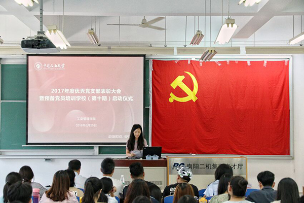 6月20日下午,石大工商管理學院在第三教學樓211教室舉行2017年度優秀黨支部表彰大會暨第十期預備黨員培訓學校啟動儀式。工商管理學院黨委書記殷建平,50名預備黨員參加了會議。