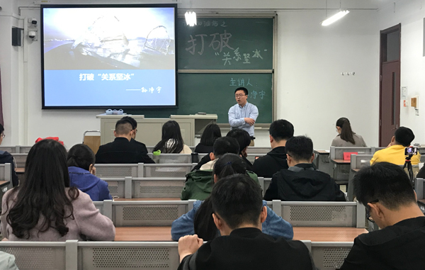 4月11日晚,中國石油大學(xué)化學(xué)工程與環(huán)境學(xué)院在二教107教室組織開展了第十九期青春加油站“打破關(guān)系堅冰”主題活動?;顒佑蓪W(xué)院黨委副書記孫凈宇擔任主講。